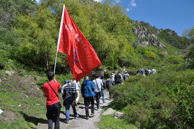 早上7:30,提前安排好的6輛景區(qū)大巴車準時等候在公司大門口,公司全體黨員和員工按照指定的車號順序上車,一路上,飛馳的車輪穿碧綠的田野、過嶄新的城鎮(zhèn)、越蜿蜒的山道,載著每個員工輕松和歡愉的心情奔向目的地。近3個小時的顛簸和期待,6輛大巴車終于于10時許陸續(xù)抵達察汗河景區(qū)。一下車,公司黨委書記沈波立,公司副總經(jīng)理、工會主席鄒繼青,公司黨辦主任宋景娥迅速集中全體人員。接著,沈波立書記在現(xiàn)場簡單介紹了徒步活動中注意的安全事項及午餐安排等其他事宜,隨著書記的一聲“徒步活動現(xiàn)在開始”的指令,公司鮮艷的“LOGO”旗幟引領(lǐng)著全體員工向察汗河景區(qū)深山峽谷挺近。