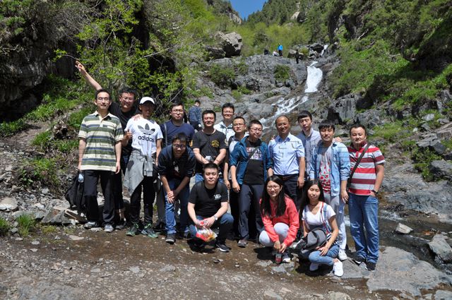 剛開始徒步時,大家還是以隊為單位排列行走,走著走著,因山勢越來越陡峭,隊列就慢慢拉開了距離,隨之不斷變換出組合的多樣性。站在一高處,俯瞰山下,逶迤的羊腸山路上,零星點綴著三三兩兩的紅女藍男,給這片幽靜而清新的山林增添了幾抹運動的色彩。沿途累了,大家稍歇息片刻,緊接著繼續(xù)往上攀爬。山路一直是沿著察汗河水流的方向逆行而上,越往上走,路越難行,甚至有的路被荊棘叢生的植物遮掩,讓你不得不停下來仔細辨析路的方向。耐力和毅力是保證到達察汗河瀑布終點的能量支撐,往返約7公里的路程,考驗著每一位員工的自信力和堅持力。黨員同志們更是發(fā)揚團隊的凝聚力,大家相互勉勵,不畏艱辛,以一個帶多個,最終用以付出的汗水收獲了終點的喜悅。站在終點的制高點,大家一起拍照,一起狂歡,一起感受瀑布的飛花四濺,一起領(lǐng)略察汗河的詩情畫意。