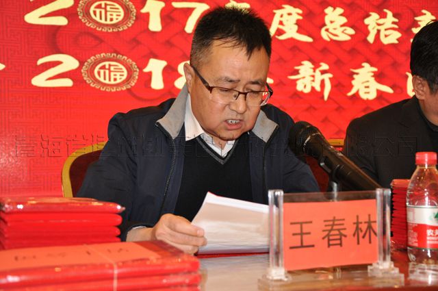 “金雞報(bào)捷去,瑞犬迎春來(lái)”。2018年2月12日下午,公司2017年度總結(jié)表彰大會(huì)暨2018年新春團(tuán)拜會(huì)在西寧大連海鮮鉆石店舉行。公司領(lǐng)導(dǎo)王力明、沈波立、宋放、胡東祥、鄒繼青、王春林,監(jiān)事會(huì)主席于俊江在主席臺(tái)上就坐,會(huì)議由公司副總經(jīng)理王春林主持。