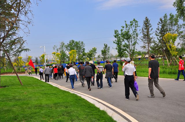 約一個小時的行程,三輛旅游大巴抵達(dá)徒步目的地,置身這里,呼吸著城市中少有的新鮮空氣,看著遠(yuǎn)道而來的游客同家人朋友閑庭信步,騎自行車或乘坐景區(qū)觀光車,沿著蜿蜒舒適的環(huán)形主路線,欣賞園內(nèi)規(guī)劃的幾個生態(tài)觀光功能區(qū),愜意的心情怎能不油然而生,員工們迫不及待的賞景之心已噴張在嗓子眼。公司董事長王力明、黨委書記沈波立和工會主席鄒繼青迅速動員大家,在中午就餐的飯店門前整齊列隊,一起合影留念。隨后,工會主席鄒繼青一聲令下,公司領(lǐng)導(dǎo)和全體員工一同開始了這次迎“七一”徒步健身活動。